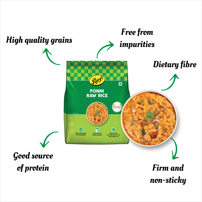 1 cup of Parry’s Ponni Raw Rice (or Parry’s Ponni Boiled Rice)